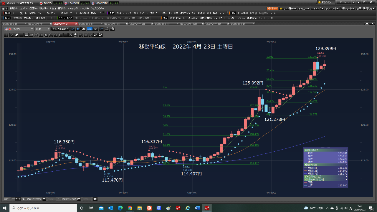 2万ドル128.493円で、成り行きロング、2022/04/23 5:29:54