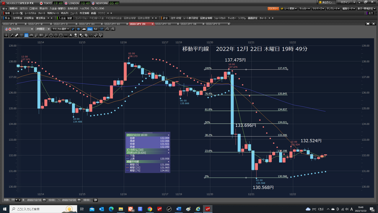 1万ドル成り行き132.041円で、投げた。2022/12/22 木曜日 19:46