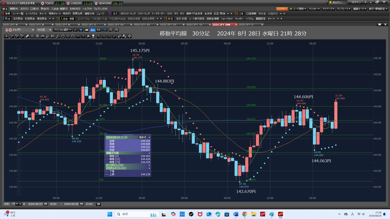 2024年8月28日 水曜日3口座144850円で、ショート注文だ。