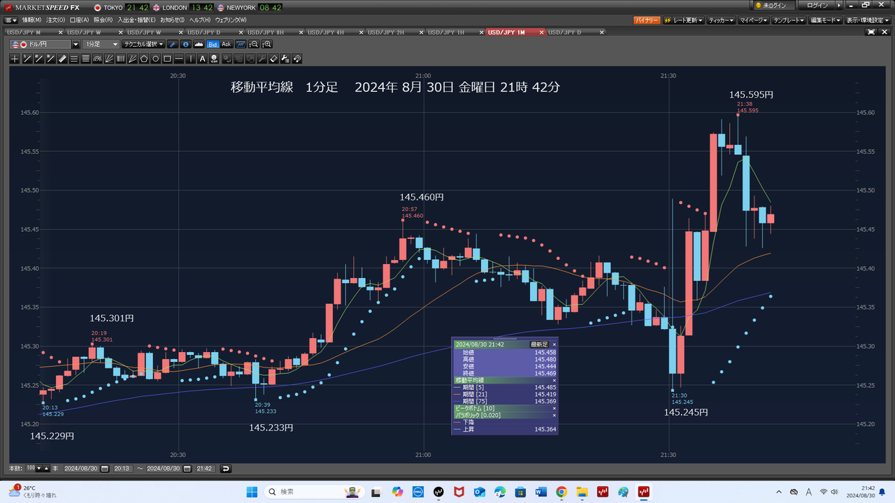 145.457円で、成り行き利確、2024/08/30 21:42