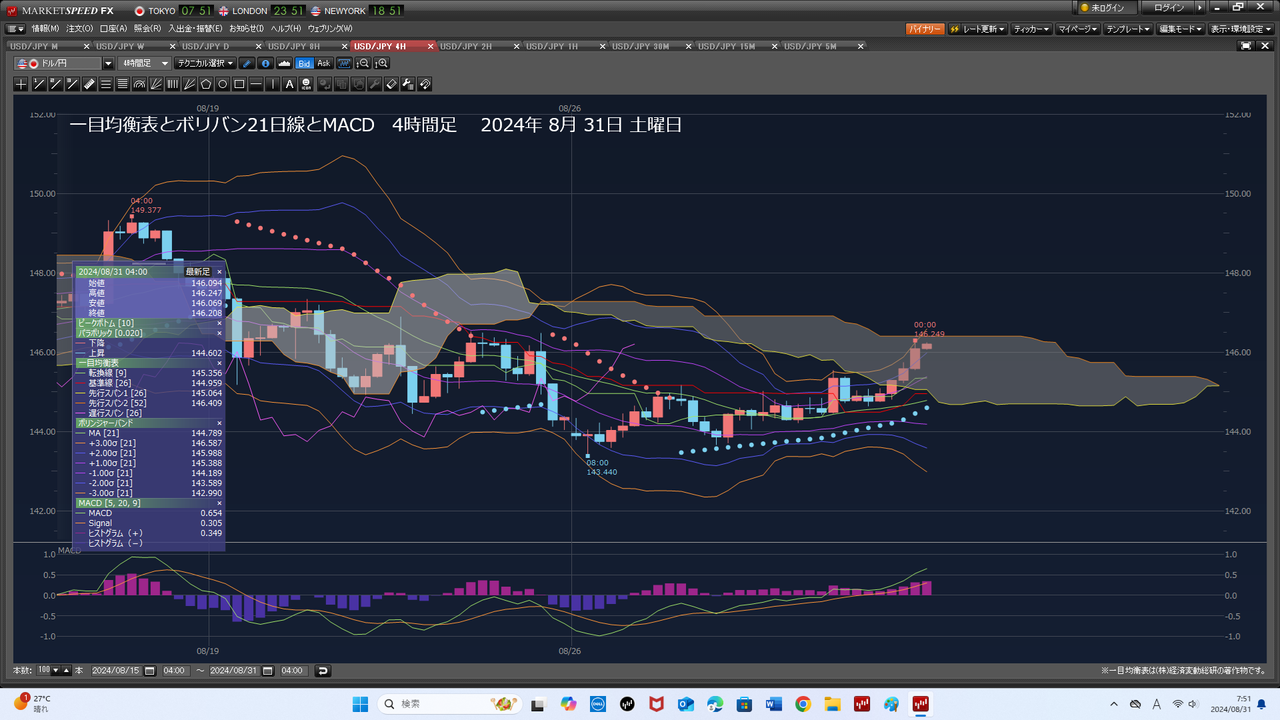 3万ドル 146.094円で、成り行きロング、2024/08/31 土曜日 未明 04:13