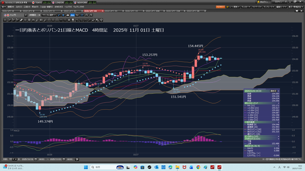 2025年11月02日 日曜日 テクニカル分析から、152.900円で買い注文だ。