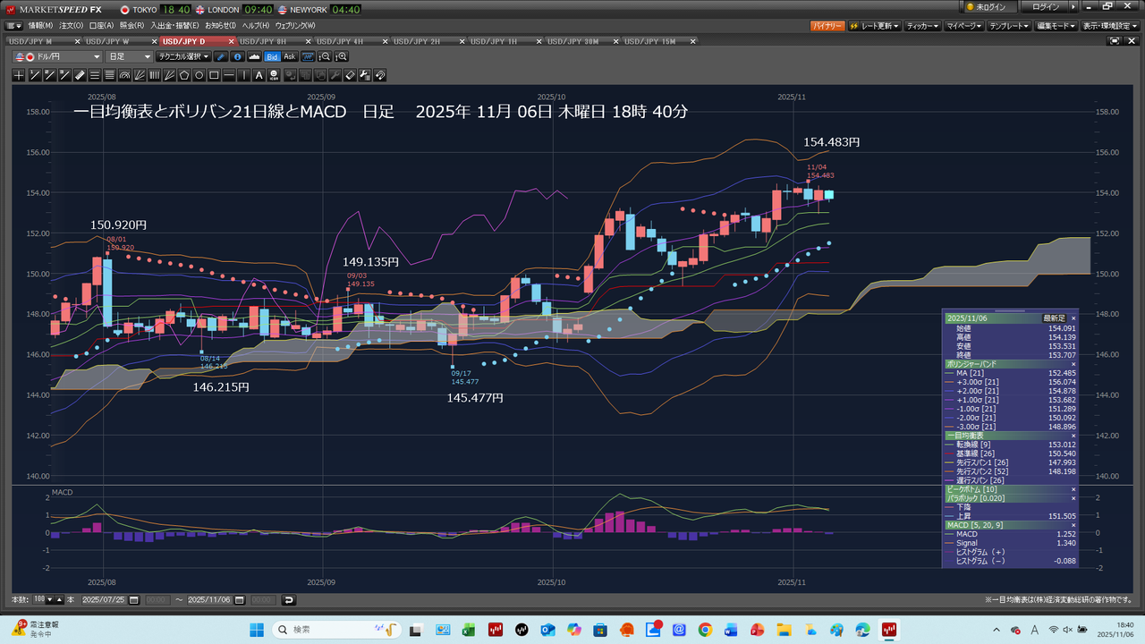 20時25分に起きた。ドル円を、見ると陰線だ。