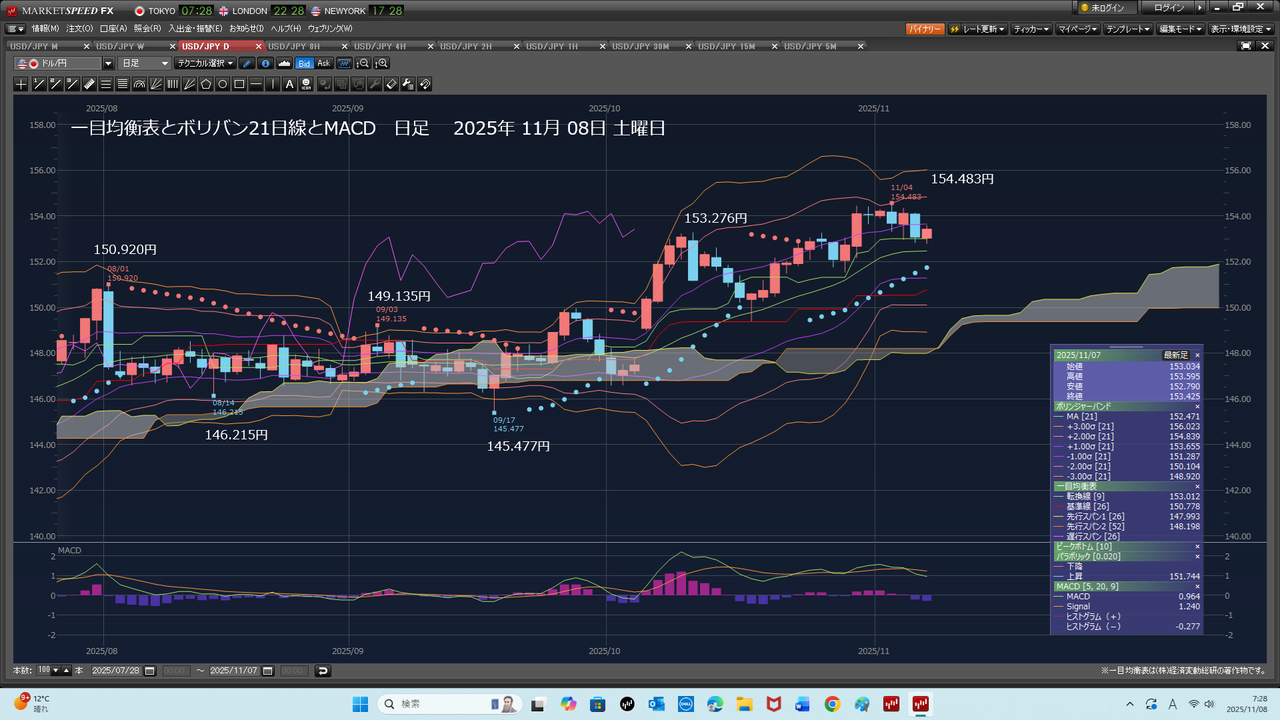 2025年11月09日日曜日 155.100円で、利確注文だ。