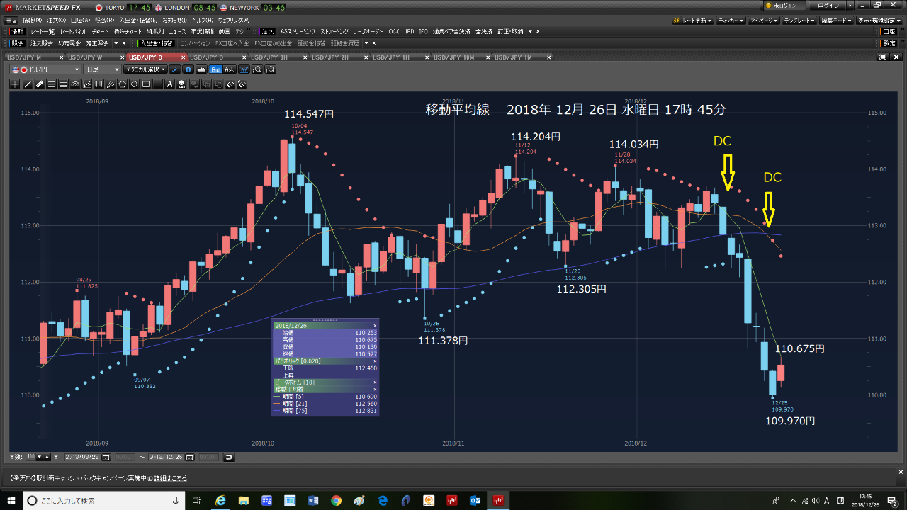 成り行きショート2万ドル 110.389円、2018/12/26 水曜日 午後 13:59:01