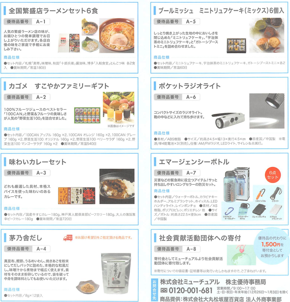 【 優待(最後)”案内” 到着 】 (100株 1年以上継続保有) 選べる優待品1,500円相当 -。