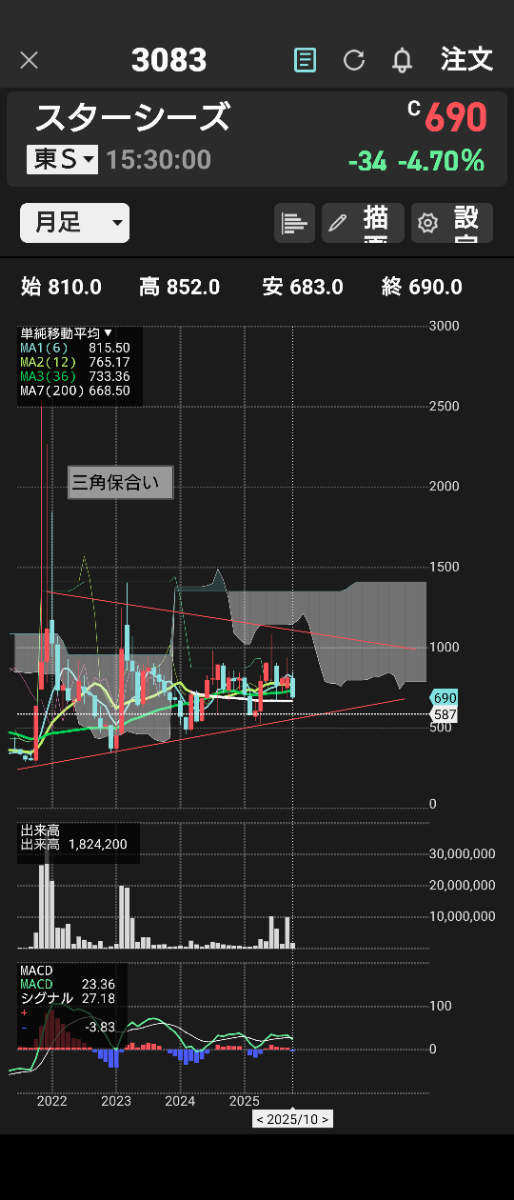 月足見ると年末頃590辺りまで掘って数ヶ月で上げる格好