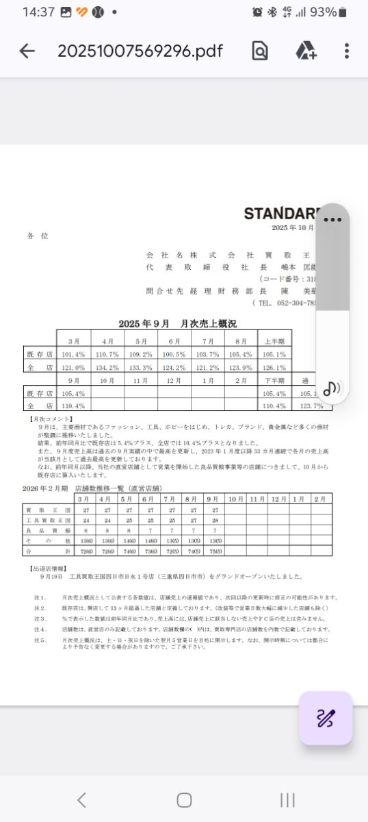 投稿一覧に戻る (株)買取王国【3181】の掲示板 2025/05/13〜 147 niw******** 10月7日 14:38 9月売り上げ出ています 返信する 投資の参考になりましたか? はい9 いいえ1 開く お気に入りユーザーに登録する 無視ユーザーに登録する 違反報告する 証券取引等監視委員会に情報提供する ツイート 投稿一覧に戻る