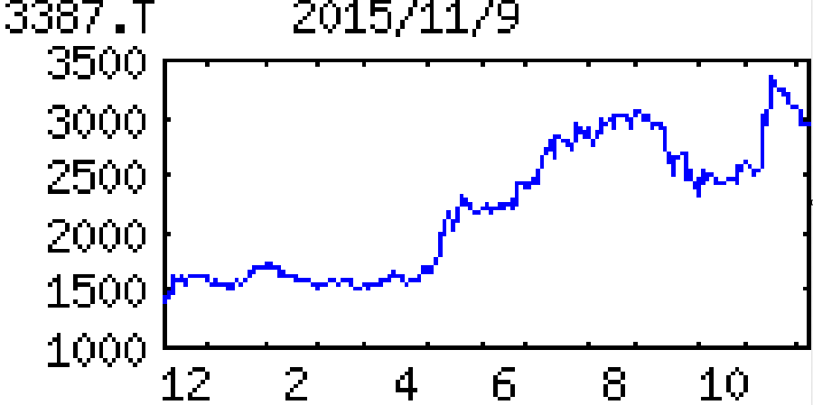 直近で200株買増し分は、大きな含み損(3000円割れ)。 合計500株保有で2月末に1:3分割で1500株になり、2016年の8月優待から15000円の食事券が届く予定に ー。