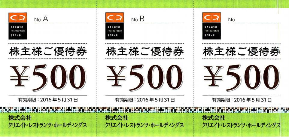 【 10年前(2015年) 】 優待到着(300株) 食事券6000円分
