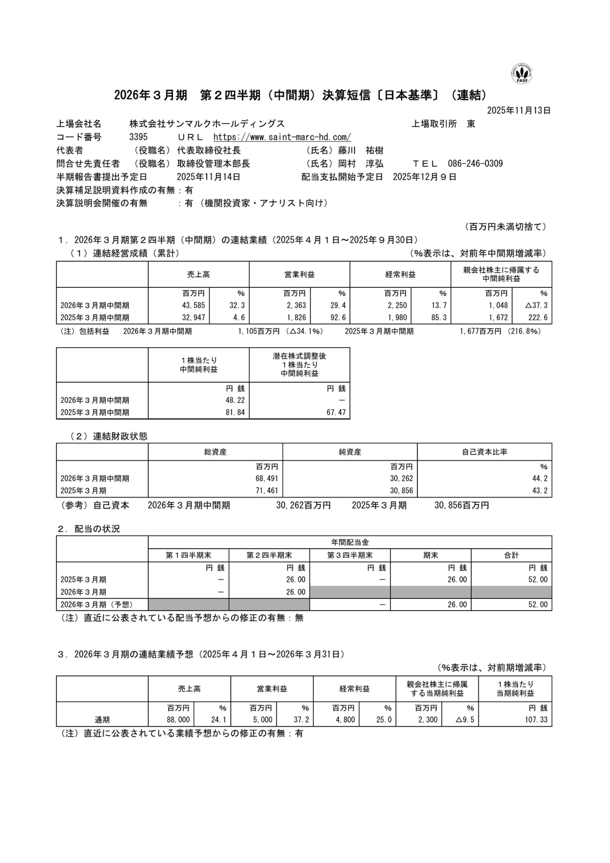2026年3月期 第2四半期(中間期)決算短信〔日本基準〕(連結)