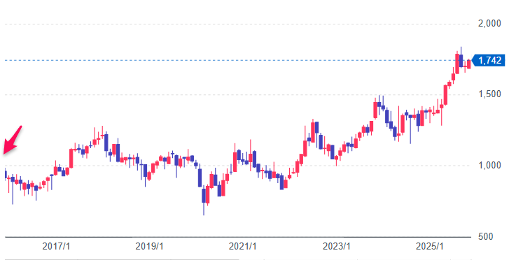 【 10年前(2015年) 12/3 】 日経終値19,939円の日。 (★10年間継続保有★) 100株 1,936円買い →(2024.4)分割で200株継続保有中。