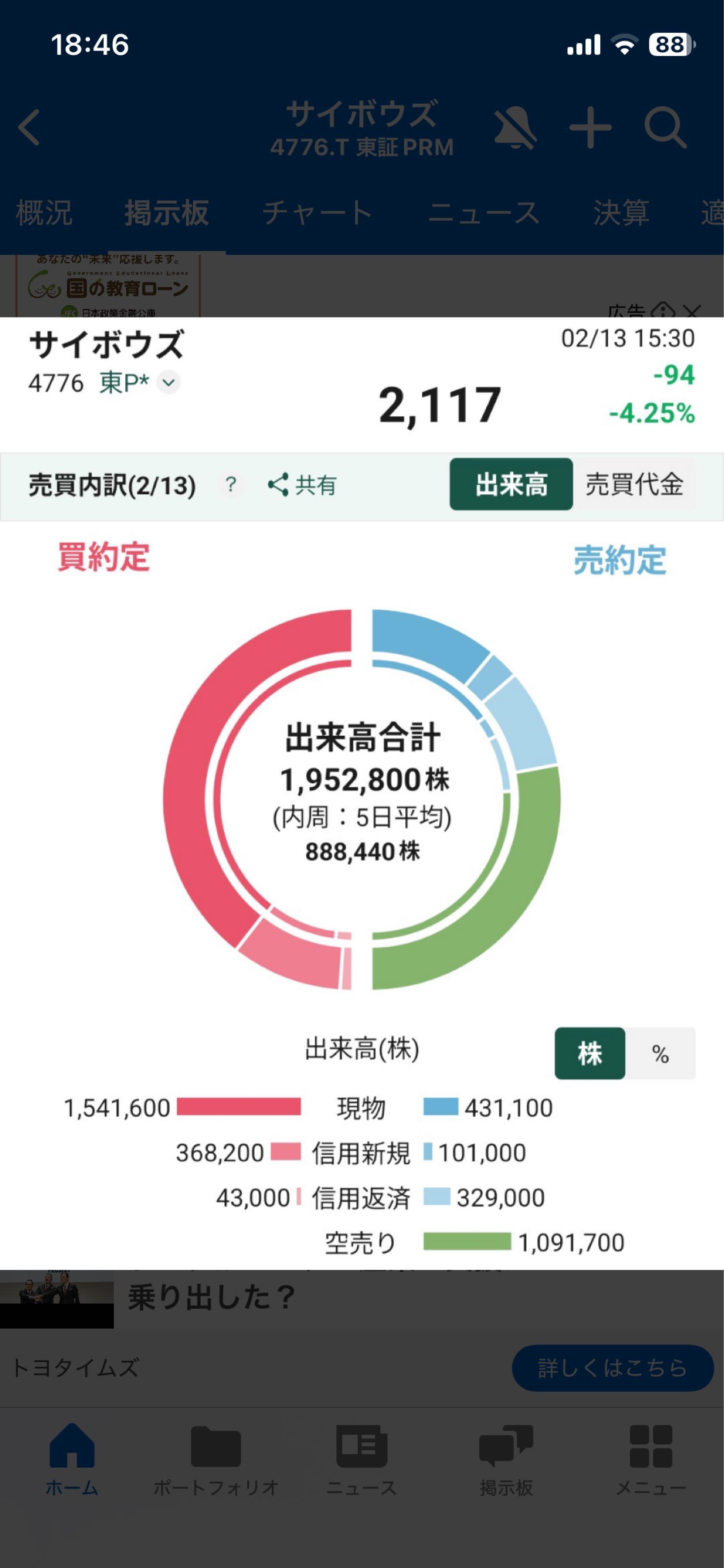 空売りが大量に入り出したからまだまだ下げるぞ汗
