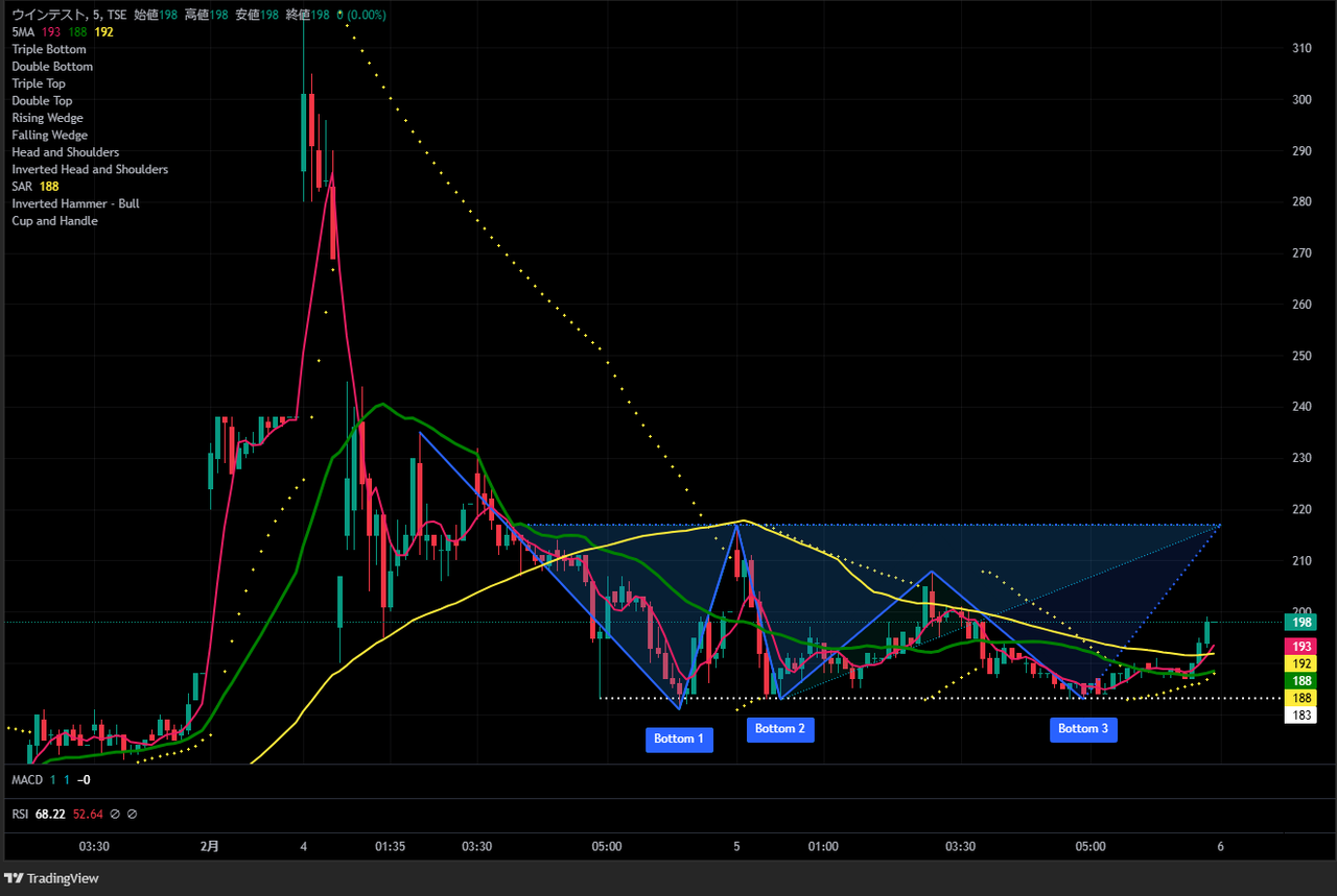 5分足がトリプルボトム、30分足がWボトムを形成していたので注視してました。