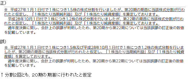 当然1株利益も20期・22期を訂正すべきじゃないのかな?
