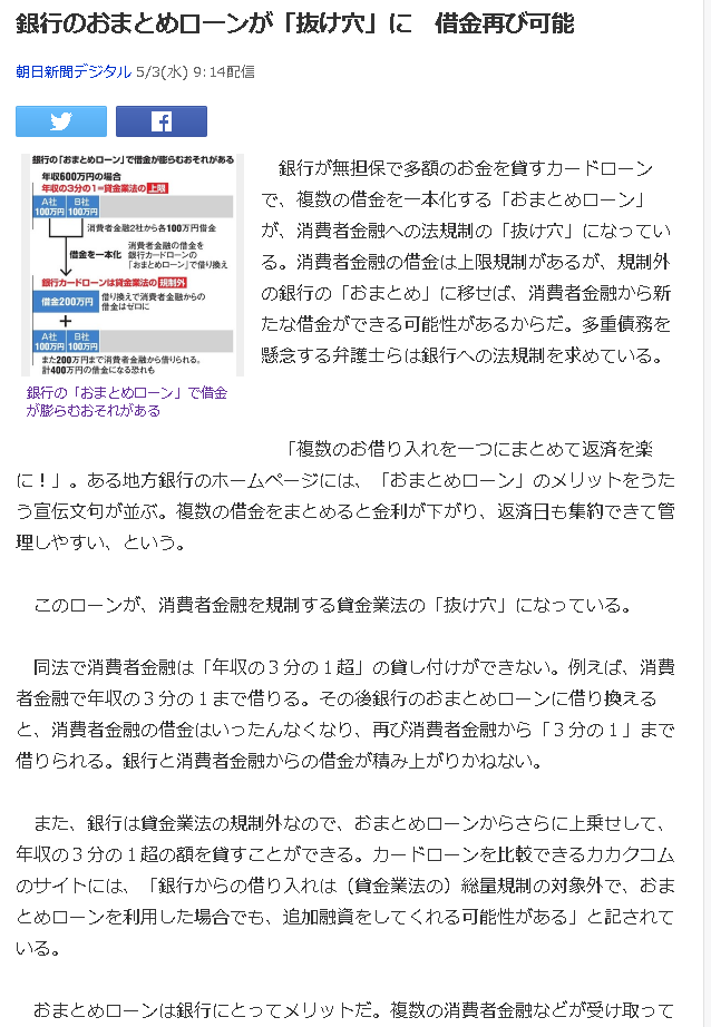 オリコにはそんなチンピラ銀行どもの片棒を担ぐようなことはしないでほしいね。さっさと年収の三分の一までに自主規制すべき。