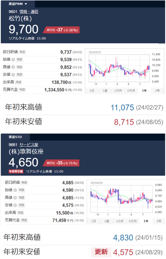 投稿一覧に戻る 松竹(株)【9601】の掲示板 2023/07/14〜2024/10/11 947 株階段 2024年8月29日 15:36 >>83 8月権利落ち ー。 投資の参考になりましたか? はい1 いいえ0 開く お気に入りユーザーに登録する 無視ユーザーに登録する 違反報告する 証券取引等監視委員会に情報提供する ツイート 投稿一覧に戻る 960 株階段 2024年9月10日 23:36 >>947 10,310円 +630(6.51%) ー。 返信数 1 投資の参考になりましたか? はい4 いいえ0 開く お気に入りユーザーに登録する 無視ユーザーに登録する 違反報告する 証券取引等監視委員会に情報提供する