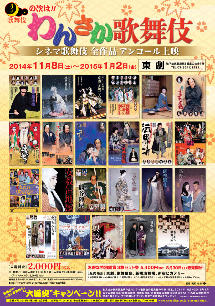 【 10年前(2014年) 11/8- 】 東劇 シネマ歌舞伎全アンコール上映 「わんさか歌舞伎」 ー。