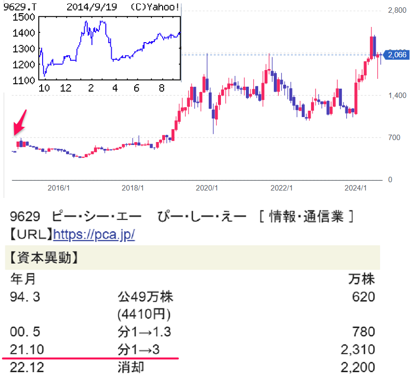 株階段![ピー・シー・エー(株)【9629】 【 10年前(2015年) 】 クオカード3000円分 優待到着 (2015年) ピー・シー・エー [9629] 公認会計士の有志が設立した独立系ソフトハウス。会計や販売管理など業務用ソフトで先駆「・・・【浮 上】主力の企業向け会計ソフトは消費税特需の反動減きつく低迷。消費税10%対応の人員増強も裏目。医療関連子会社の開発費負担も響く。ただ好採算のクラウド版好調やテレビCM大幅圧縮で黒字転換。 【積極開拓】マイナンバー制対応と絡めクラウド版の顧客開拓一段強化。会計士など通じ市場深耕、1万社(現在5800社)目指す。CMは盆や正月除き全面停止。](https://textream-cimg.west.edge.storage-yahoo.jp/24/19/59/2b52d47fc3a578a0f373f4d4745424121750870426.png)