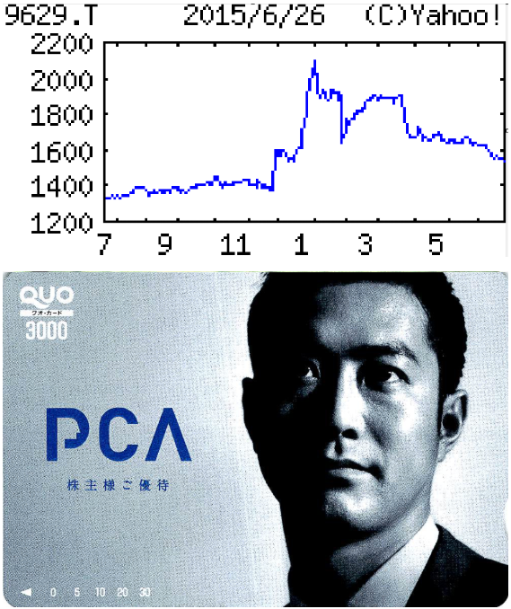 【 10年前(2015年) 】 クオカード3000円分 優待到着