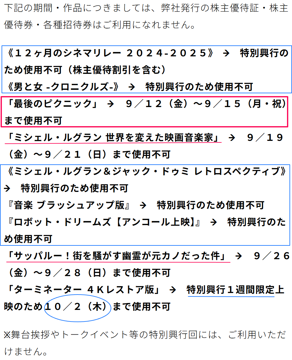※「リンダ リンダ リンダ 4K」は、松竹優待で鑑賞済。 「ターミネーター4Kレストア版」は、テアトル優待(渋谷)で無料鑑賞可能 ー。