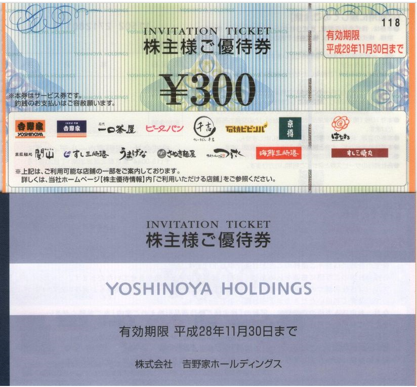 【 10年前(2015年) 】 優待到着 食事券3000円分 ( 2月末日 8月末日)