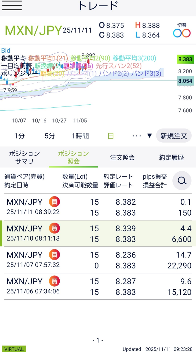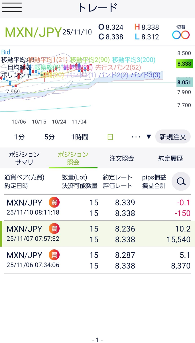 ○ドルコスト平均法改によるメキシコペソ円トレード検証開始3日目