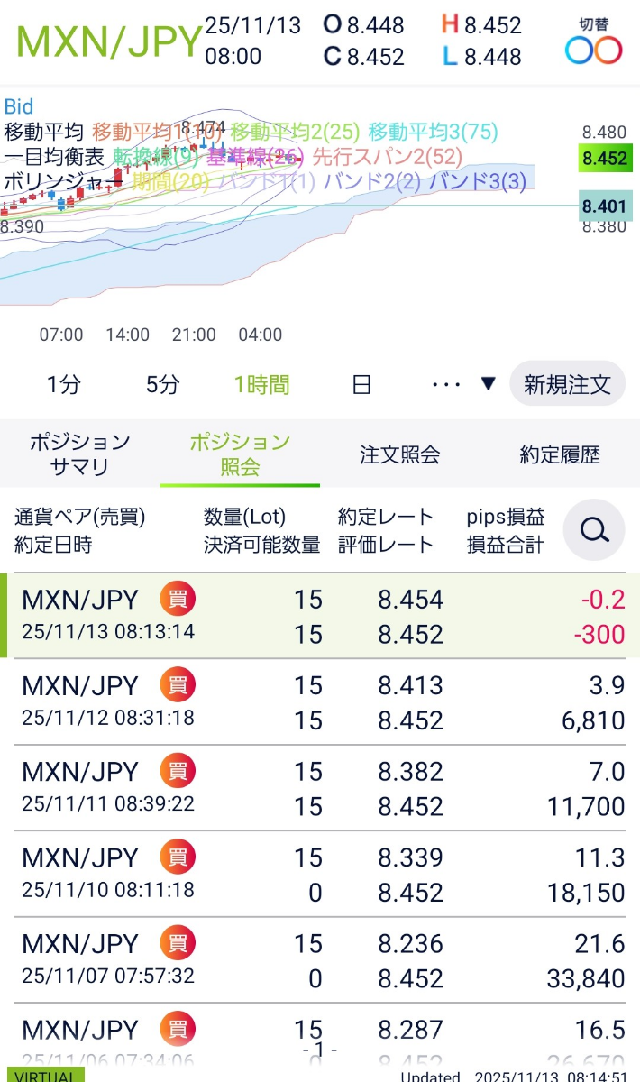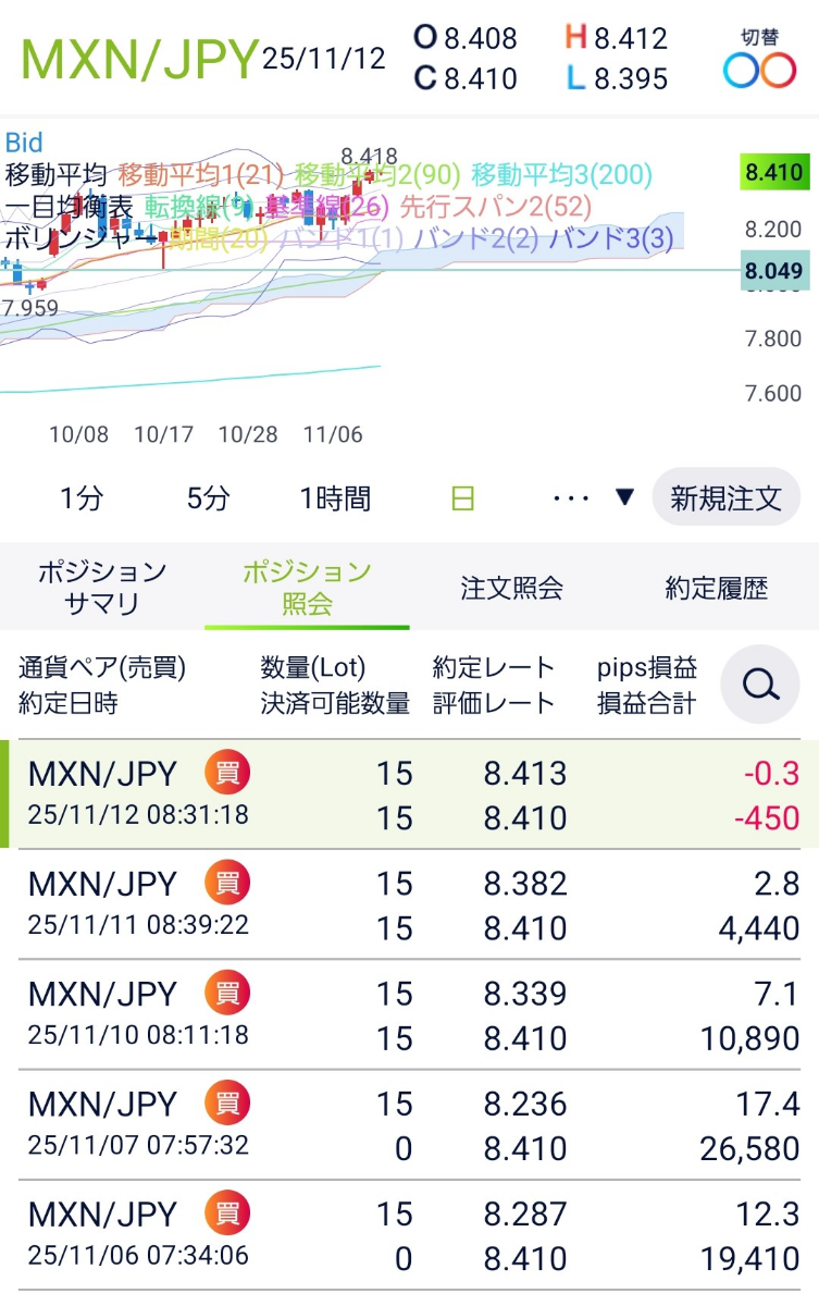 ○ドルコスト平均法改によるメキシコペソ円トレード検証開始5日目