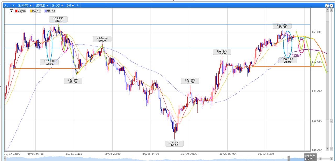 週明け上値が重たく1時間20SMAで抑え込まれるような状況になった場合、75SMA(4時間のミドル)からの反発見て高値切下げ確認して再度MAを下抜けした場合のみショート検討できるけど、これ以外のパターンは手出しする必要もないかと。