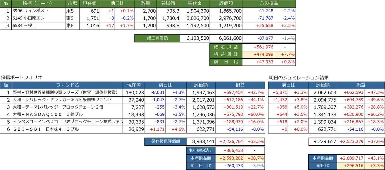 で、SBI日本株を除く明日の投信は+296kと全戻しの予想 (^^♪