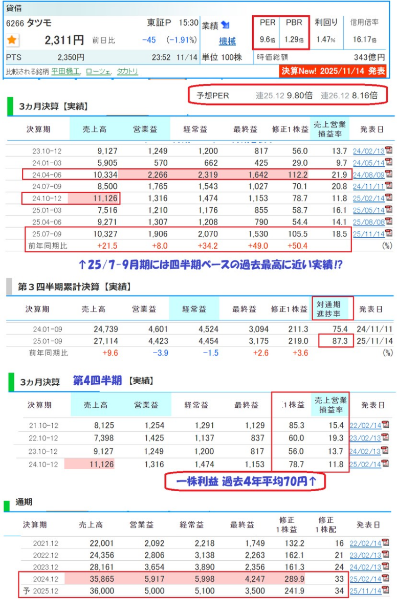タツモの通期予想に基づけば 第4四半期10-12月期には一株利益20円しか見込んでおらず、通期予想未達の可能性は ほぼ考えられないばかりか、過去4年間の10-12月期の平均一株利益70円からすれば、上方修正される可能性も少なくないと推察されます!?