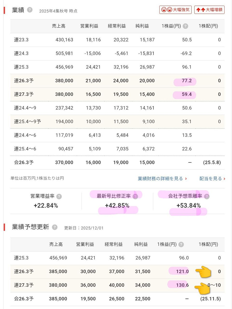 下図のとおり四〇報新春号での大幅上方修正が見込まれています!