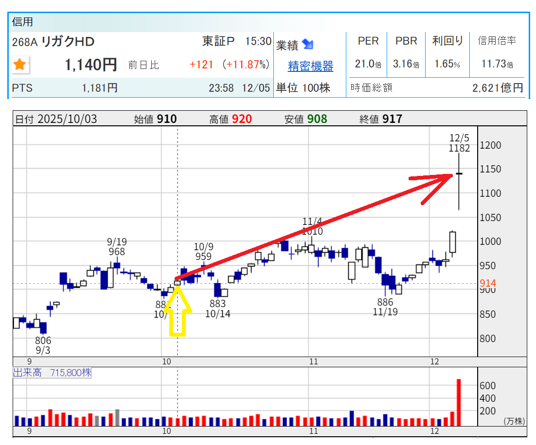 本日は【AI半導体関連銘柄】としてリガクが "株式市場に見出された日" となりました⁉ 窓を空けての上昇だったので "いったんは様子見" がよいかと思いますが 押し目を拾って 間違いない銘柄ではないか…と思います。