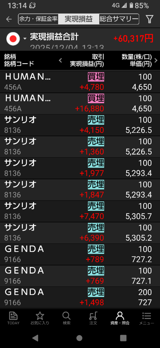 株では勝ってる人が多くて年末の損益出しの売りって今年はいつもより少ないんじゃない🙄なんとか日当GET!🤗