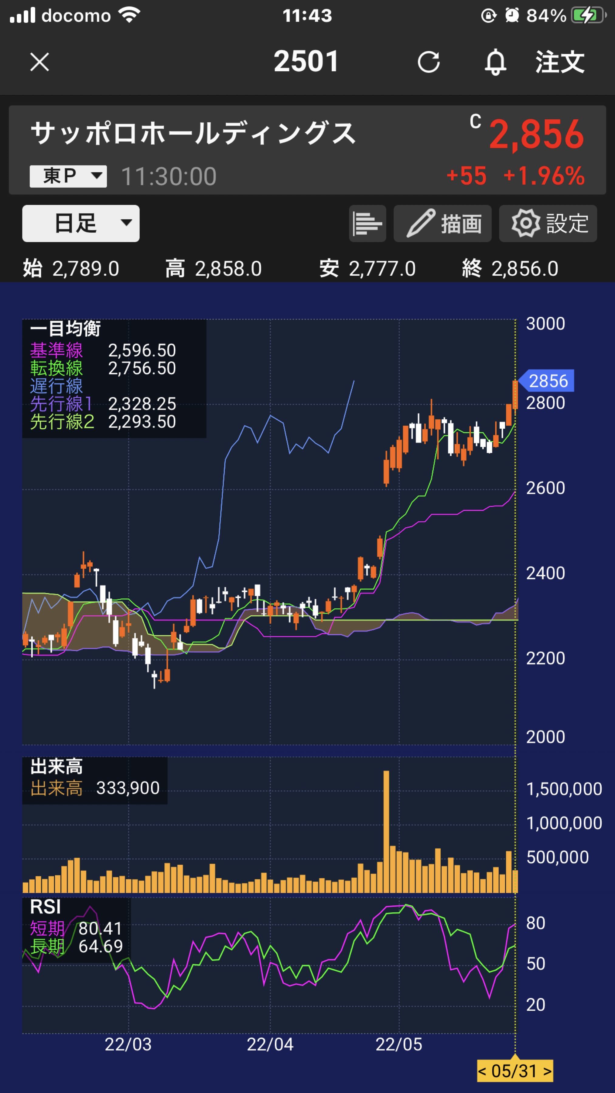 年初来高値突破。誰も見てないとこを行くのが気持ちいい😁