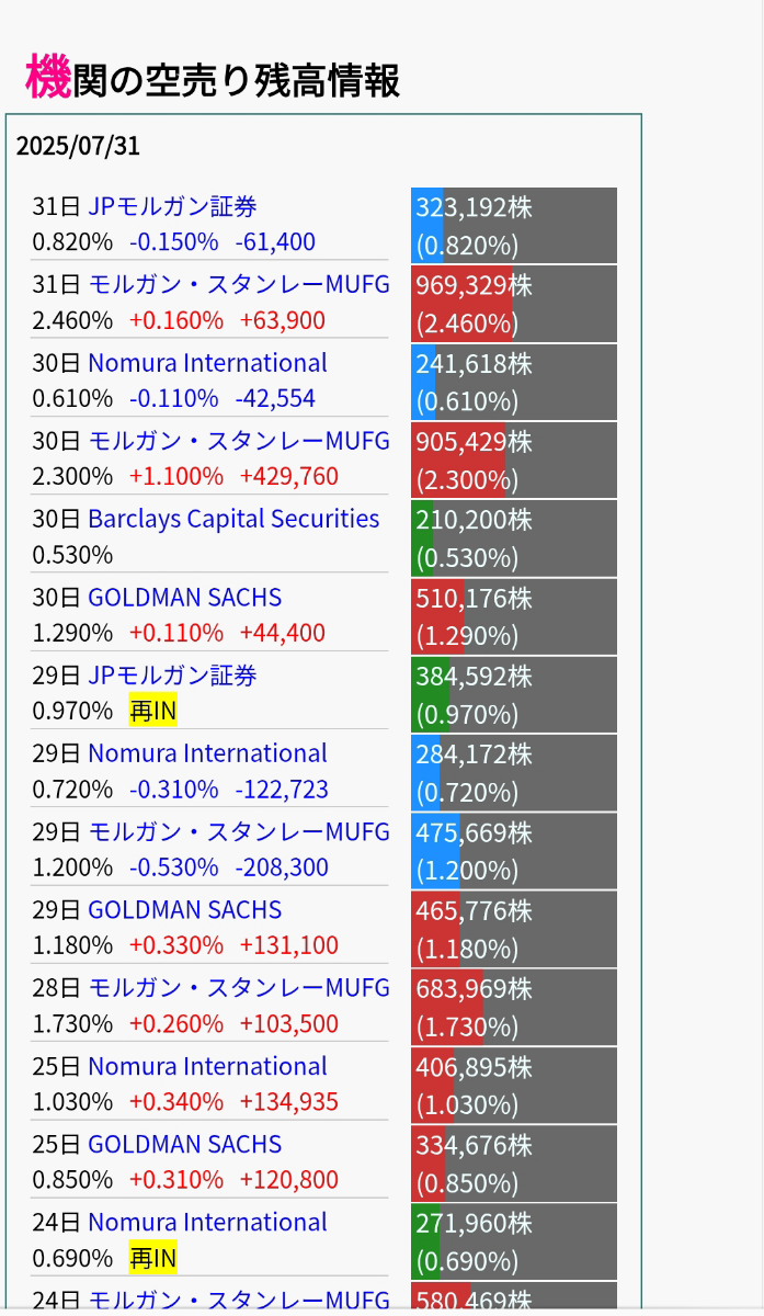 投稿一覧に戻る Fronteo labの掲示板 2080 . 8月2日 08:16 モルガンが急騰前の低い所で多めに空売。 空売り単価上げる為に急騰高値から大量の空売。 4年前と変わらないですね。 今回のIRでFRONTEOの底力みたいな物が感じられました。これが売上に繋がってくれたら…なんて期待が持てたので、値が落ち着いたらまたナンピン再開したいと思います。 返信する 投資の参考になりましたか? はい8 いいえ1 開く お気に入りユーザーに登録する 無視ユーザーに登録する 違反報告する ツイート 投稿一覧に戻る