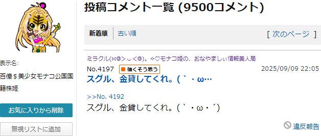 ミラクル(⋈◍>◡<◍)。✧♡モナコ姫の、おなやましぃ情報美人局の掲示板