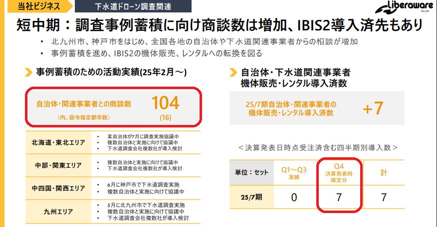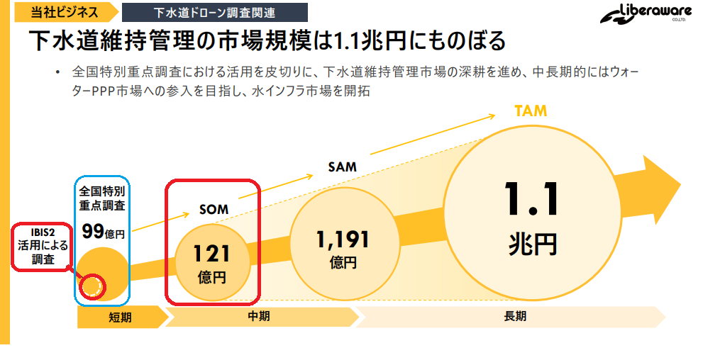 来年夏までに使用される下水道点検予算99 億円のうち 20 億円くらいは Liberawareの売上になる可能性が少なくないのではないかと推測しています。