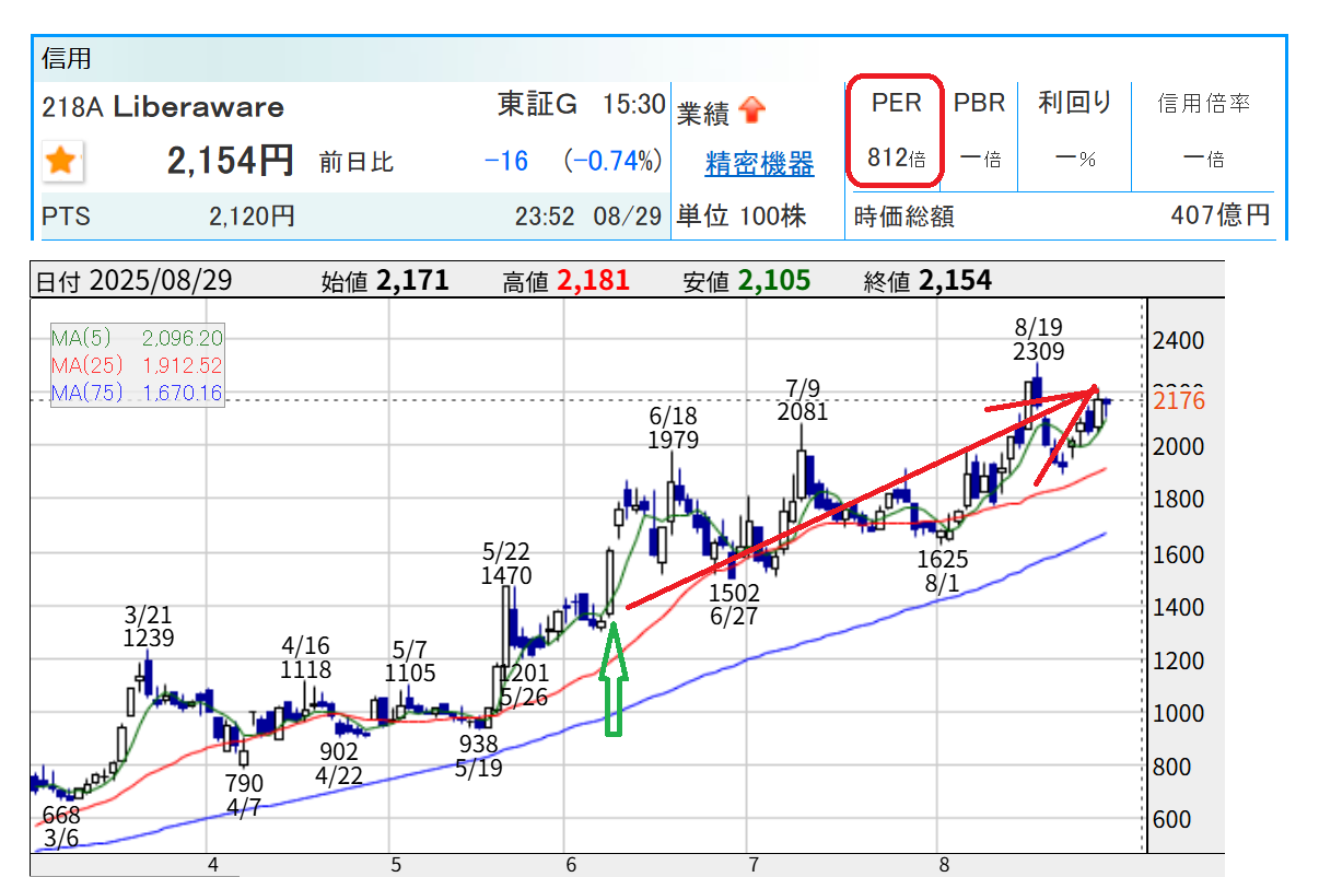 PER748倍と "超割高株" ですが 本日上場来高値を更新しています。