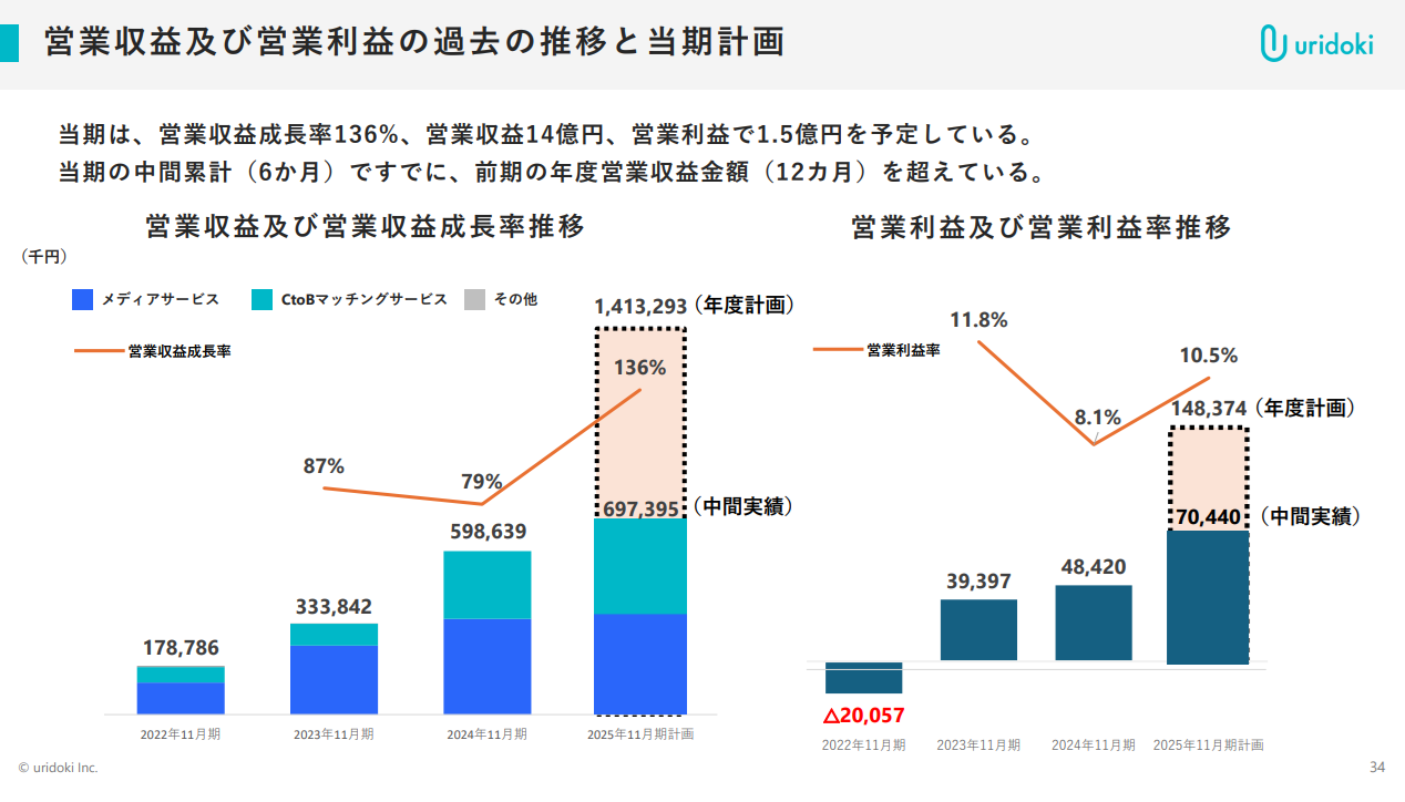 下図の「事業計画及び成長可能性に関する」説明資料によれば「25年11月期は認知拡大期としており 広告投資を行っている。認知獲得後、広告投資は一定程度抑制を見込む」と記載されています。