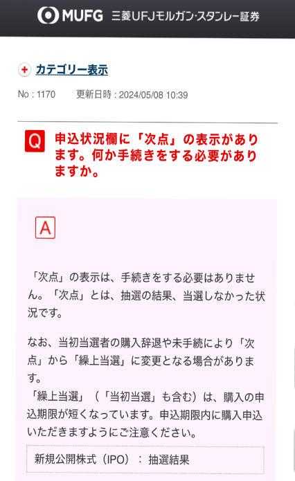 >次点の申し込みしていなければ、繰り上げもないし、申し込みしていれば、自動的に購入になっているはずだが????????