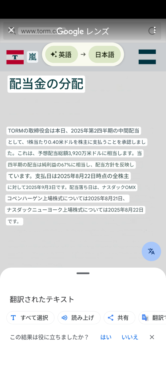 どうやら、今回も1株配当は0.4ドルみたいです。