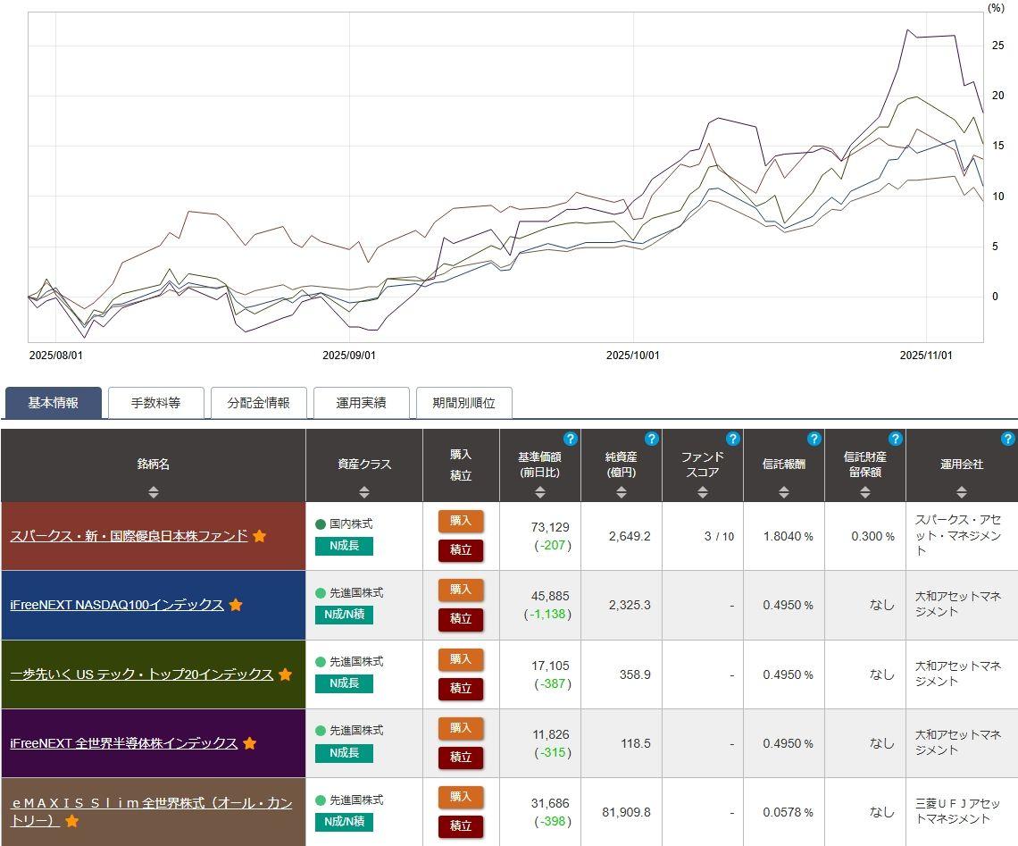 銘柄比較結果 7月から 9月まで1位 オルカン/ナスダック100を抑えて 現在3位
