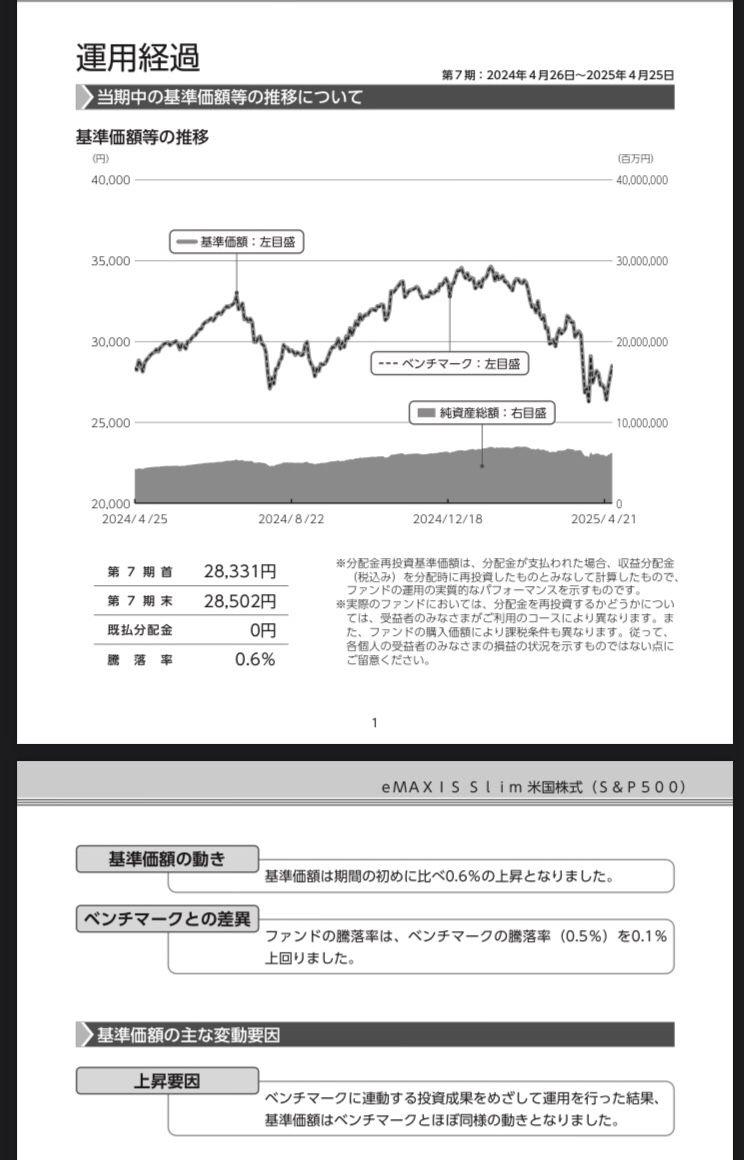 2025年04月25日決算「eMAXIS Slim 米国株式(S&P500)運用報告書」がでましたね