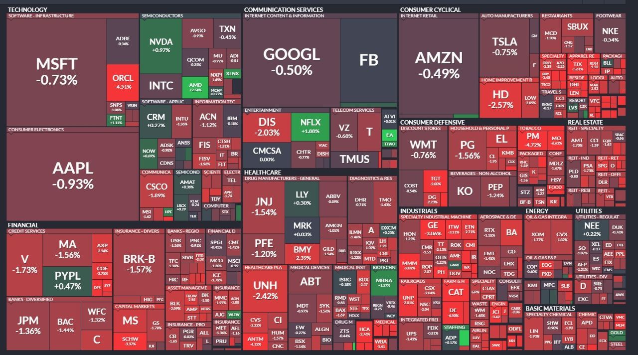 9月29日と30日のヒートマップ比較して見て思ったのですが、29日はMSFT、AAPL、GOOGL、AMZNなど(ヒートマップの右上の部分)が大きく下げていたようですが、30日その他の部分(左下の部分)の赤色が強くて、興味深い結果です。
