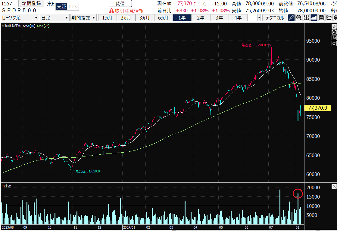 S&P500のETF(1557)のチャートも見ているのですが、遅れた情報とは思いますが