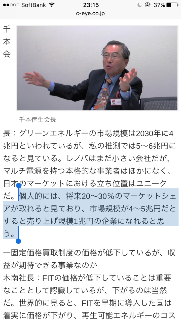 個人的には、将来20〜30%のマーケットシェアが取れると見ており、市場規模が4〜5兆円だとすると売上規模1兆円の企業になれると思う。