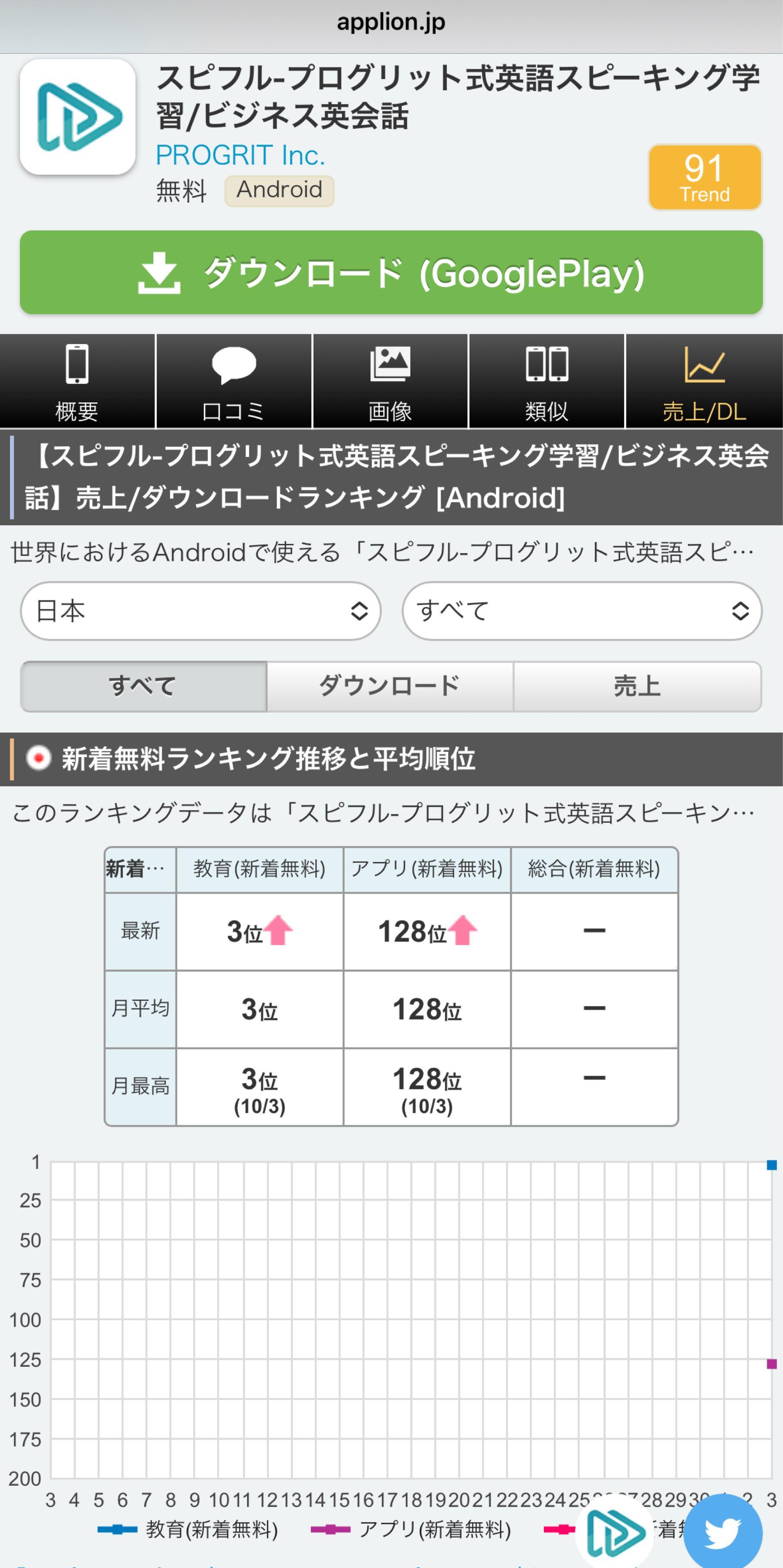 スピフルandroid版、ランキングに載ってきましたね