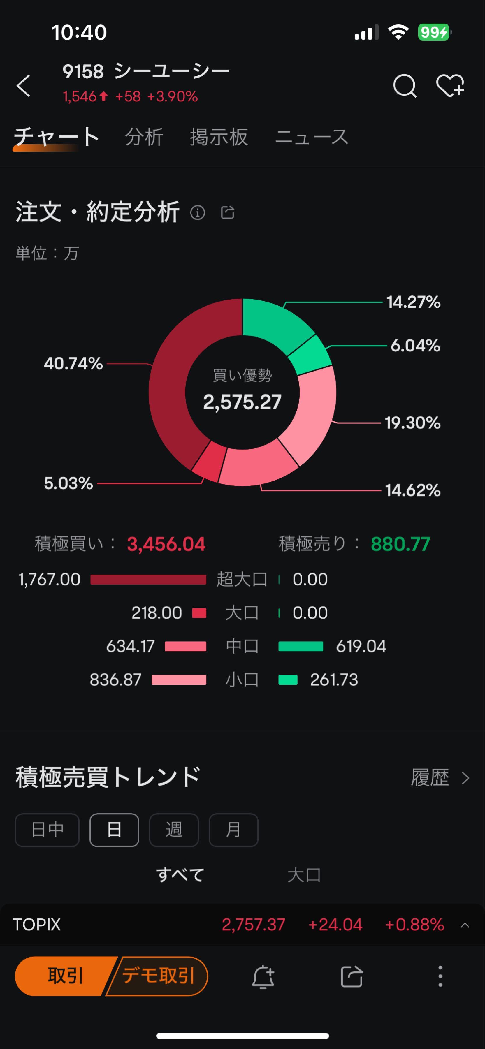 投稿一覧に戻る (株)シーユーシー【9158】の掲示板 2024/07/26〜2025/02/13 999 469***** 強く買いたい 2月13日 10:40 参考になるかわからないですけど、超大口が入ってますね 投資の参考になりましたか? はい9 いいえ1 開く お気に入りユーザーに登録する 無視ユーザーに登録する 違反報告する 証券取引等監視委員会に情報提供する ツイート 投稿一覧に戻る