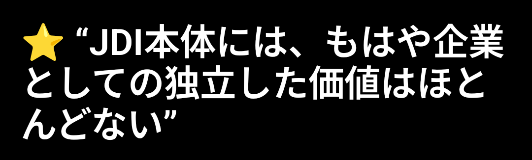 念のためChatGPTさんにJDIの将来性について聞いてみたのですが、泣きたくなるくらいに無慈悲な答えが返ってきました😭
